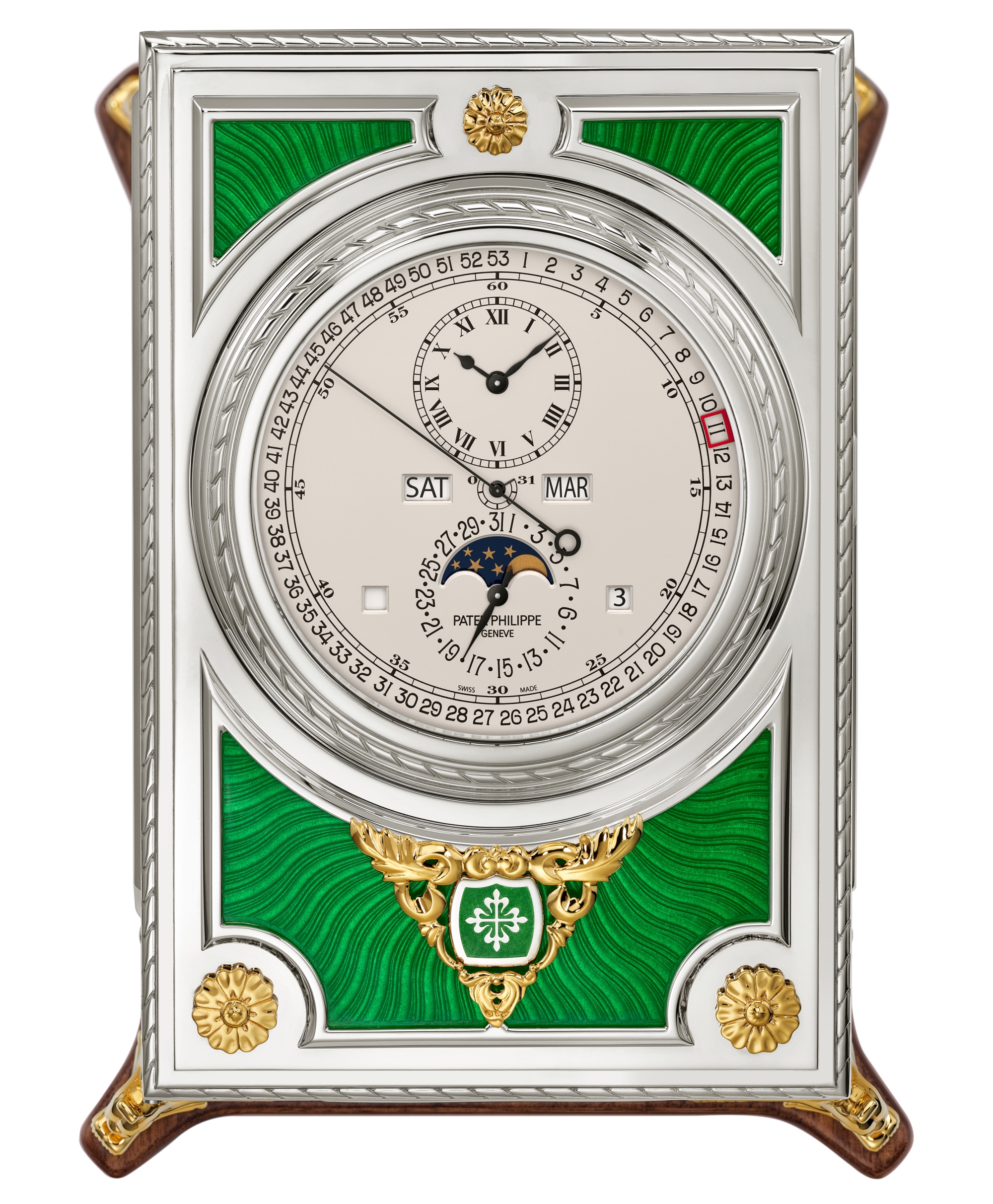 Một chiếc đồng hồ bàn độc đáo với chức năng lịch vĩnh cửu và lịch tuần. Đây là tác phẩm nghệ thuật đích thực dành cho những nhà sưu tầm đam mê đồng hồ cao cấp. Được trang bị bộ máy thủ công mới, dự trữ năng lượng lên đến 31 ngày cùng độ chính xác ấn tượng ±1 giây/ngày, mẫu đồng hồ này là biểu tượng của sự hoàn hảo kỹ thuật.