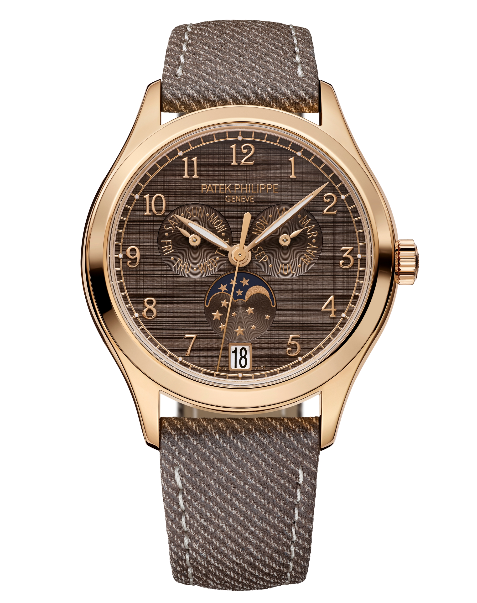 Mẫu lịch hàng năm bằng vàng hồng này không đính đá quý, với mặt số satin-finished màu nâu sẫm lấy cảm hứng từ lụa shantung. Hệ thống lịch tự điều chỉnh cho các tháng 30 hoặc 31 ngày, được cấp bằng sáng chế từ năm 1996.