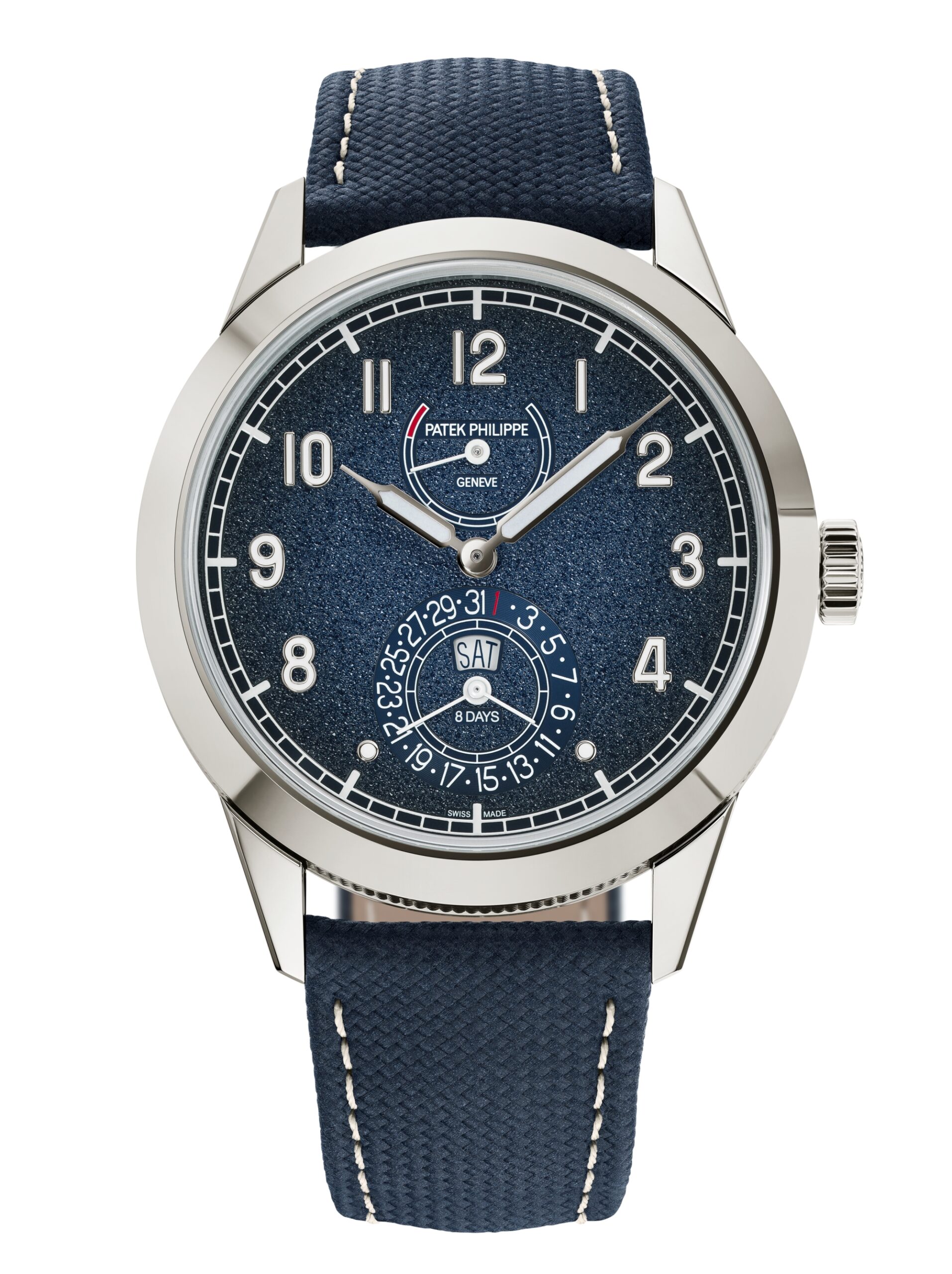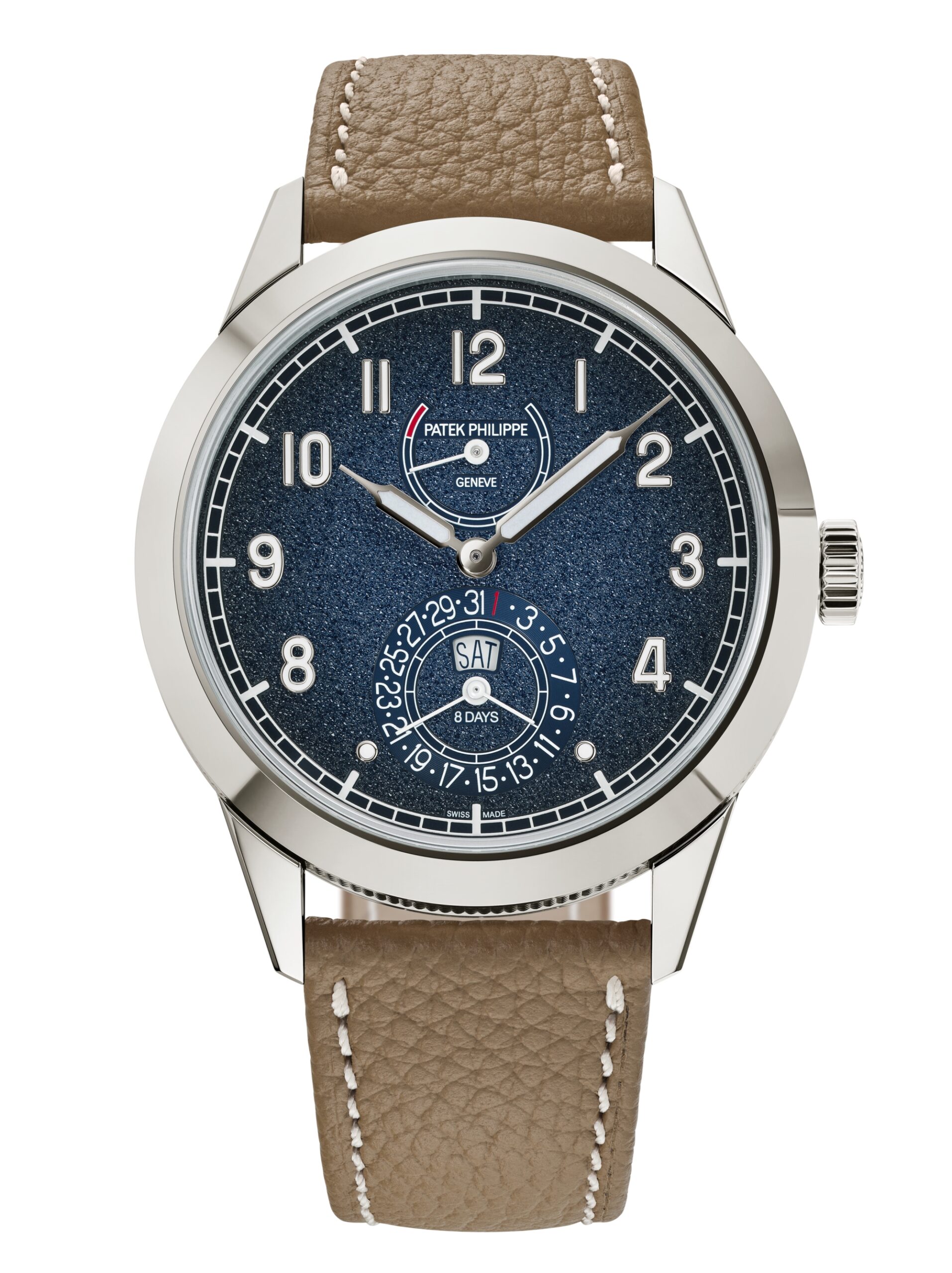 Thuộc dòng Calatrava, mẫu đồng hồ này nổi bật với thiết kế thủ công, dự trữ năng lượng 8 ngày và chức năng nhảy ngày-tháng tức thì vào nửa đêm. Bộ escapement Pulsomax® bằng Silinvar® đảm bảo độ chính xác và bền bỉ vượt trội.