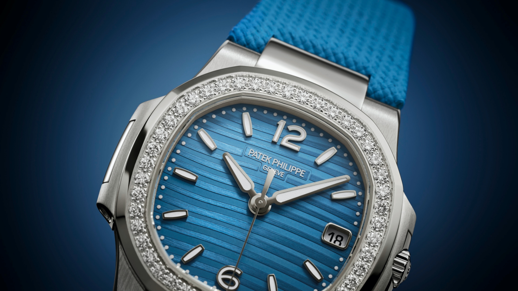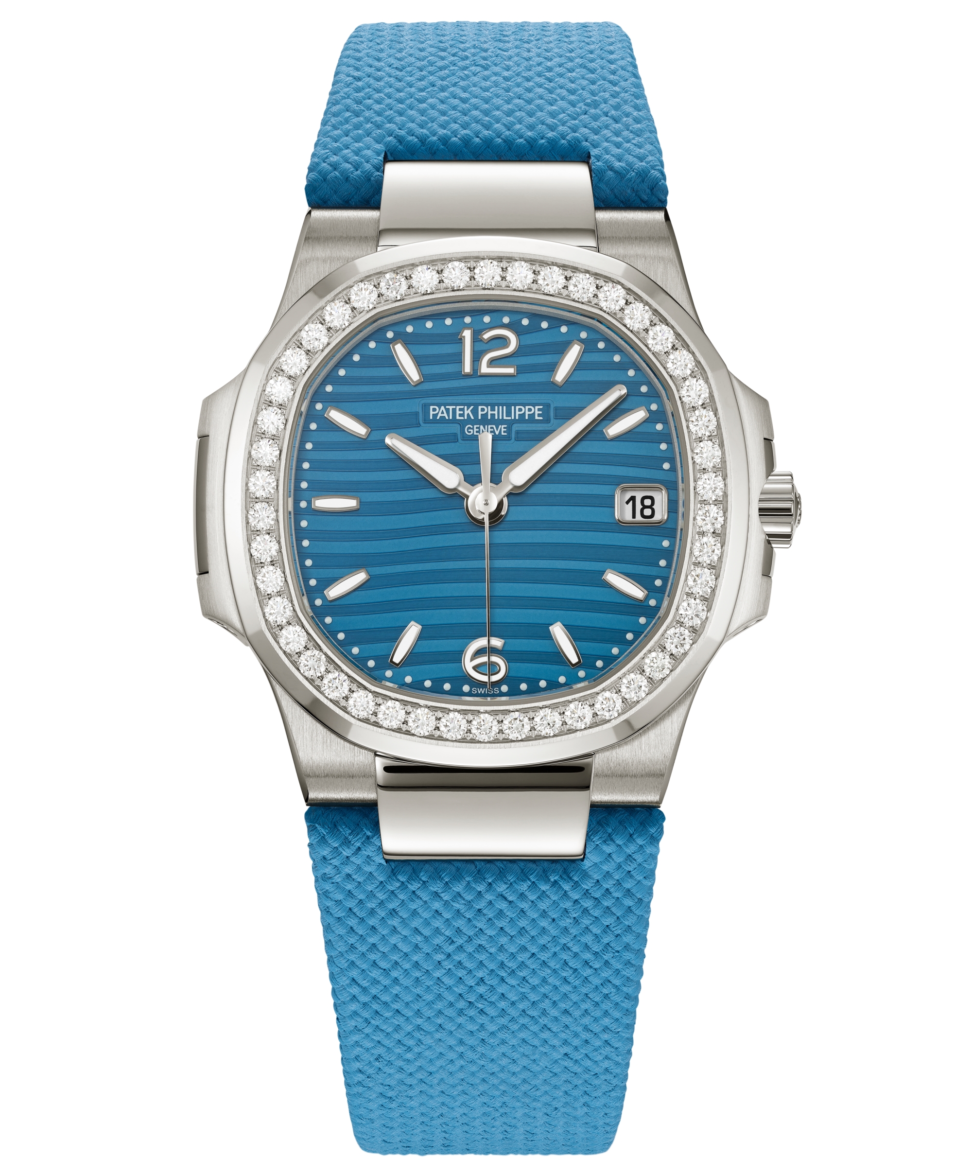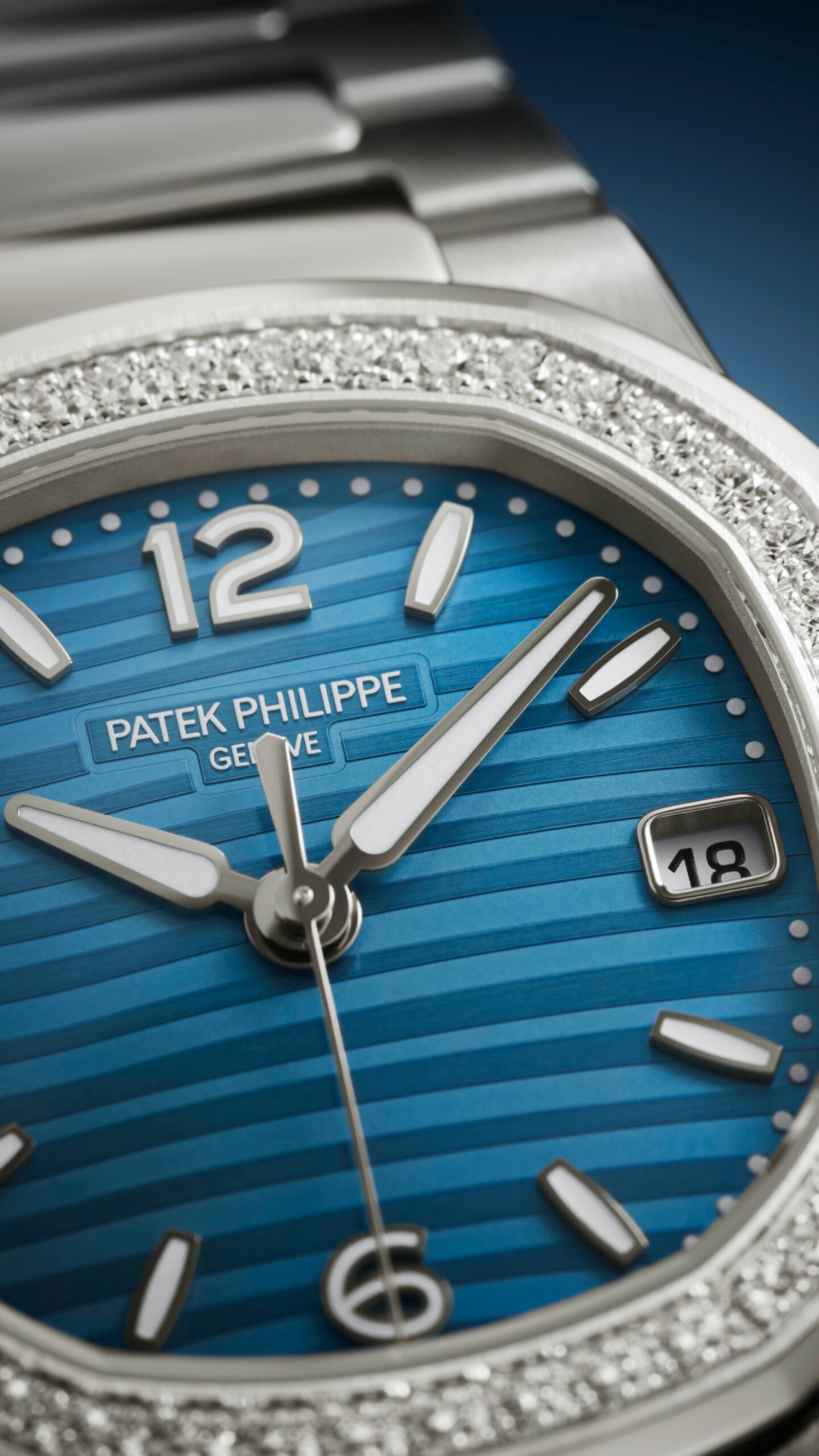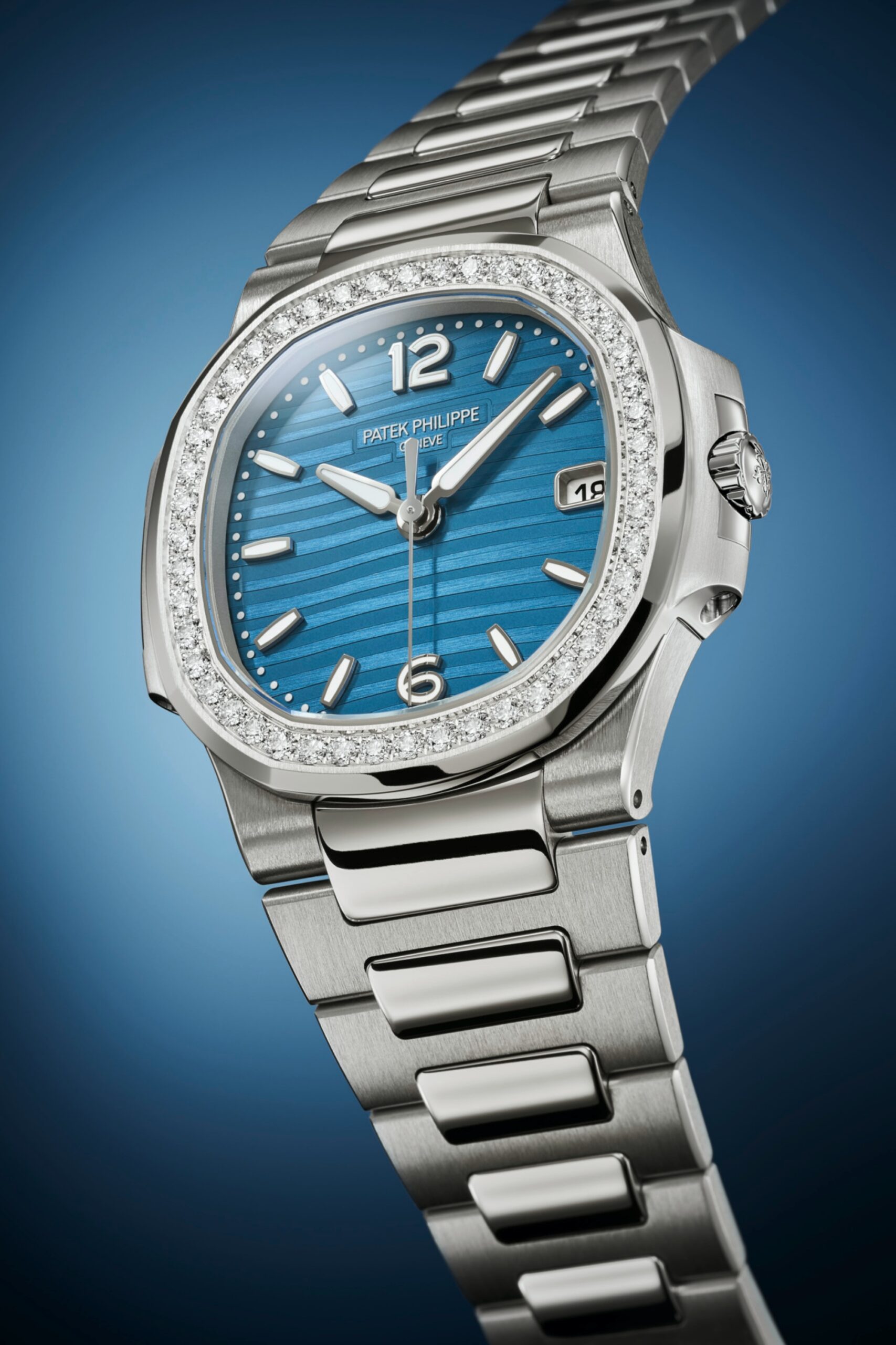 Phiên bản Nautilus dành riêng cho phái nữ, nổi bật với mặt số họa tiết sóng màu xanh azur và viền bezel đính 46 viên kim cương brilliant-cut. Sự kết hợp giữa phong cách thể thao mạnh mẽ và vẻ đẹp xa xỉ khiến chiếc đồng hồ này trở thành lựa chọn lý tưởng cho những người phụ nữ hiện đại, yêu thích sự khác biệt.